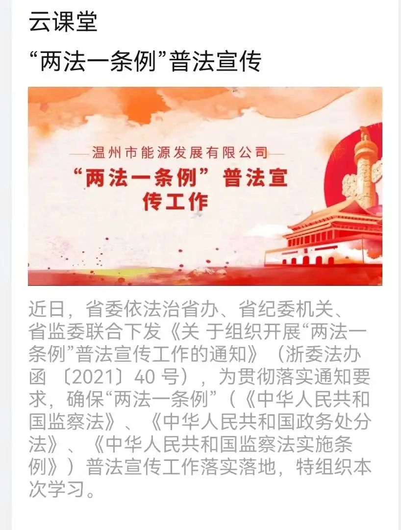 為深入學習貫徹習近平法治思想,貫徹落實習近平總書記關于全面從嚴治黨和監察體制改革重要論述精神,根據省委依法治省辦、省紀委機關、省監委聯合下發《關于組織開展“兩法一條例”普法宣傳工作的通知》的要求,能源公司近日開展了一系列線上線下的“兩法一條例”普法宣傳活動。